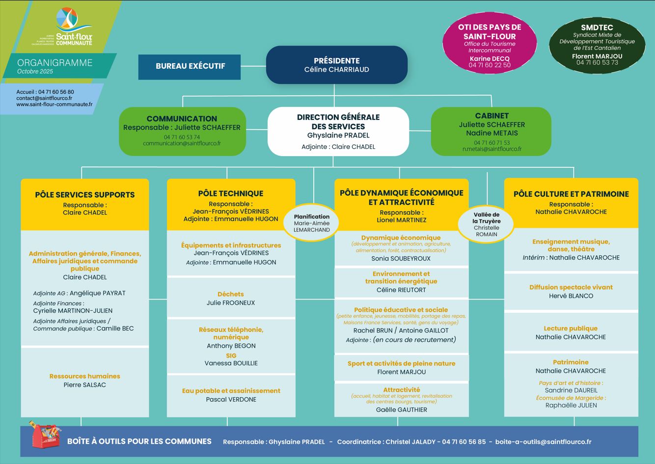 Saint-Flour Communauté compte 160 agents répartis dans différents Pôles et Services :